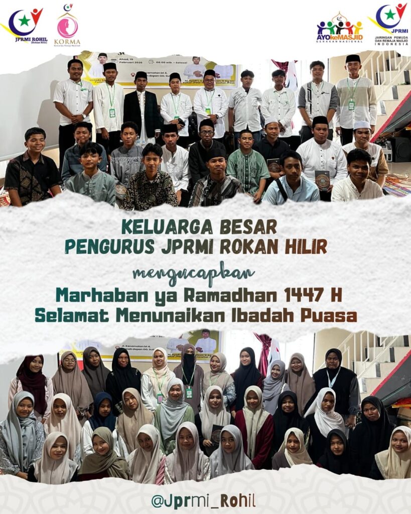 Keluarga Besar Pengurus JPRMI Rokan Hilir mengucapkan selamat menunaikan ibadah puasa. Semoga bulan suci ini membawa keberkahan, memperkuat ukhuwah, serta menjadikan kita pribadi yang lebih sabar, ikhlas, dan bertakwa.