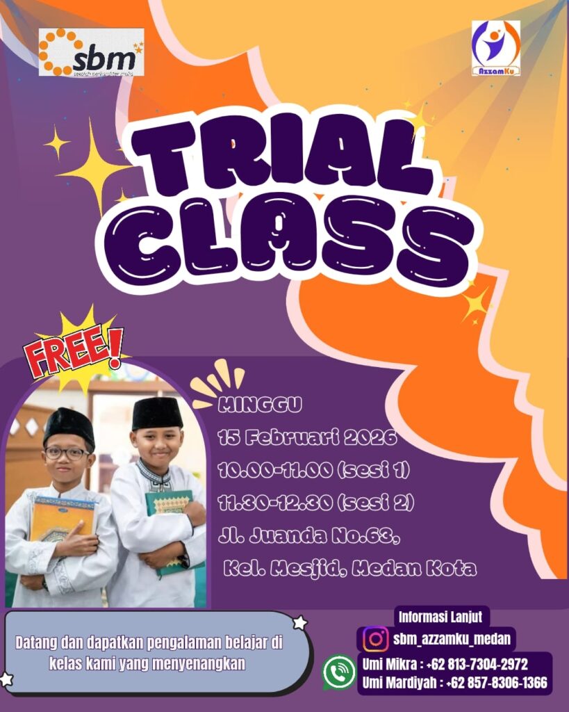 #SBMAzzamKu #TrialClassMedan #PendidikanAnak #MedanKota #SekolahKarakter