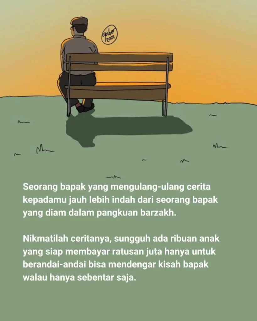 Seorang bapak yang mengulang-ulang cerita kepadamu jauh lebih indah dari seorang bapak yang diam dalam pangkuan barzakh.