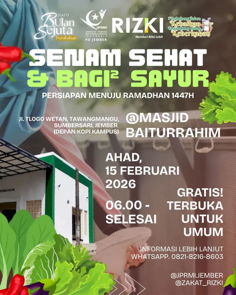 Dalam rangka persiapan menyambut Ramadhan 1447 H, kami mengundang sahabat dan warga sekitar Masjid Baiturrahim untuk hadir dalam kegiatan: