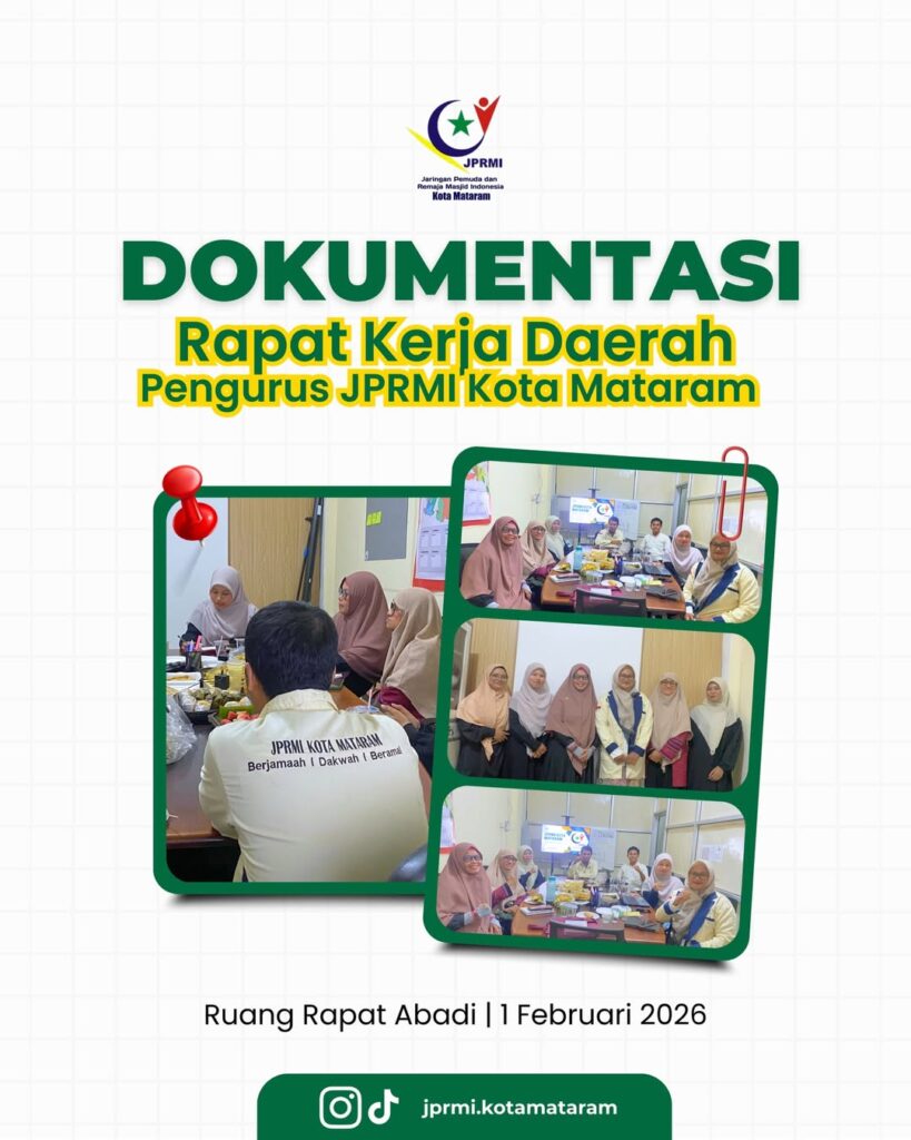 MATARAM, Ahad, 1 Februari. Pengurus Jaringan Pemuda dan Remaja Masjid Indonesia (JPRMI) Kota Mataram resmi menyelenggarakan Rapat Kerja (Raker) untuk merumuskan arah strategis organisasi di tahun 2026. Mengangkat tema “Dari Masjid, Untuk Indonesia”, kegiatan ini dilaksanakan di Ruang Rapat ABADI.